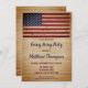 Cartes d'invitation rustiques pour une fête d'adieu militaire avec drapeau américain. Ces invitations de fête avec drapeau américain rustique sont parfaites pour une fête d'adieu pour un soldat, un départ de déploiement militaire, une célébration de retour à la maison, une remise de diplôme militaire et une retraite militaire. Personnalisez cette invitation avec drapeau américain avec l'événement de votre soldat, son nom et les détails de la fête.