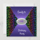 Invitation pour une fête d'anniversaire 18 ans avec impression d'animaux arc-en-ciel multicolores avec noir et violet pour filles et adolescentes. Personnalisable à souhait.