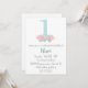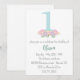 Invitation Fête d'anniversaire 1 an bleu floral et rose paste