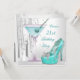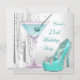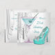 Invitation de fête d'anniversaire 21 ans Martini perles bleues sarcelle blanche Chaussures à talons hauts Cocktails martini Invitations de fête pour femmes, fêtes de filles, Créateur Zizzago