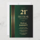 Invitation Fête d'anniversaire 21 ans noir vert rayé or