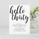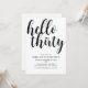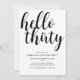 Célébrez votre 30e anniversaire avec style avec cette invitation de fête d'anniversaire moderne. Sur fond blanc, la typographie script noir indique "Bonjour trente". En dessous, en typographie noire moderne, vous pouvez facilement personnaliser avec vos détails.