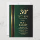 Invitation Fête d'anniversaire 30 ans verte noire avec rayure