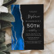 Invitation Fête d'anniversaire 50 ans Royal Blue Silver Agate