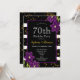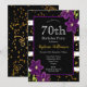 Fête d'anniversaire 70 ans| Conception de paillettes noires et dorées avec détail floral violet . Voici un modèle prêt à être personnalisé avec les détails de votre fête .