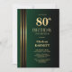 Invitation Fête d'anniversaire 80 ans avec rayures dorées noi