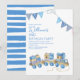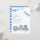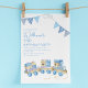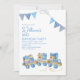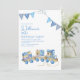 Invitation de fête sur le thème du Train en bois, avec un train jouet en bois à l'aquarelle et des guirlandes bleues. L'invitation comprend également un modèle d'invitation de fête d'anniversaire facile à personnaliser, les styles, tailles et couleurs de police peuvent être modifiés en cliquant sur le lien de personnalisation supplémentaire après la personnalisation.