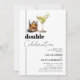 Élevez votre organisation de fête avec nos invitations uniques et intemporelles pour une fête d'anniversaire conjointe. Dotées d'un design chic et rustique à l'aquarelle, mettant en vedette des verres à whiskey et à martini. Le mantra 'double célébration' complète un modèle de texte personnalisable. Il est temps d'apporter du style et de la personnalisation à vos fêtes.