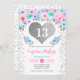 Invitation à la fête d'anniversaire de la fille. Design élégant en argent faux parties scintillant avec accent floral. Carte Invitation avec coeur de parties scintillant et confetti. Turquoise, violet, rose, blanc. Parfait pour une célébration ado élégante des anniversaires. Peut être customisé à n'importe quel âge.