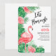 Faites de votre jour spécial un événement inoubliable avec cette invitation de fête d'anniversaire sur le thème tropical du flamant rose ! Des décorations rose chaud aux activités amusantes au bord de la piscine, ces festivités pleines de joie seront sûres de laisser une impression durable à vos invités. Votre famille et vos invités seront ravis lorsqu'ils recevront cette invitation joyeuse qui présente un flamant rose amical et les mots "Allons flâner !".