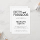 Invitation moderne et minimaliste pour les 50 ans en noir que vous pouvez personnaliser et envoyer pour célébrer vos cinquante ans. Les mots "Cinquante et fabuleux" sont écrits avec une typographie audacieuse tendance. Les couleurs du texte peuvent être modifiées à l'aide du menu d'édition.