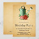 Étonnez vos invités avec cette élégante invitation d'anniversaire florale présentant un magnifique arrosoir vert avec des fleurs vintage sur un fond parchemin rustique. Ajoutez simplement vos coordonnées sur ce modèle facile à utiliser pour en faire une invitation unique.