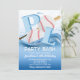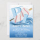 Plongez dans le plaisir avec cette invitation d'anniversaire créative et accrocheuse pour une fête à la piscine sur le thème du baseball ! Avec un design ludique mettant en vedette une balle de baseball, une batte et les lettres "PL" en gras éclaboussant dans l'eau, cette invitation combine parfaitement deux activités estivales préférées : le baseball et la natation.
