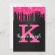 Cette invitation tendance, chic et unique de glamour féminin présente un métal brossé noir et un monogramme subtil et personnalisable dans une typographie serif populaire au recto en arrière-plan. Le texte personnalisable comprend un script magenta fuchsia rose chaud et une typographie sans serif blanche. Le design au recto comprend des gouttes de paillettes magenta fuchsia rose chaud en haut pour ajouter de l'éclat et des étincelles. Le verso comprend un métal noir brossé assorti et des gouttes de paillettes rose chaud ainsi qu'un monogramme rose et le prénom de la personne qui fête son anniversaire en script blanc. Vous pouvez personnaliser cette invitation en modifiant le texte dans le modèle de produit.