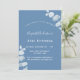 Un arrière - plan bleu poussiéreux, décoré de tiges d'eucalyptus, sprigs. Personnalisez et ajoutez un nom et des détails du parti.
