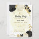Fleurs noires et blanches romantiques avec or feuille botanique d'anniversaire invitation Les détails de la parties scintillant sont simulés.