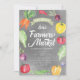 Cette conception moderne et fraîche de marché fermier est parfaite pour les anniversaires et les fêtes sur le thème des produits locaux, de la ferme à la table ou de l'agriculture biologique. Avec un effet de texture de tableau noir rustique en arrière-plan, une typographie rétro stylisée qui dit "Marché fermier" et encadré par nos légumes originaux peints à la main à l'aquarelle. Le verso présente un motif à carreaux à l'aquarelle rouge pour un effet supplémentaire spécial. Cette invitation est idéale pour les enfants, les adolescents et les adultes de tout âge. Personnalisez-la simplement avec vos propres détails en utilisant les champs de modèle de texte fournis. N'oubliez pas de vérifier toutes les différentes formes de découpe et les types de papier de luxe disponibles !