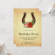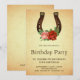 Étonnez vos invités avec cette élégante invitation d'anniversaire présentant un magnifique fer à cheval vintage orné de fleurs anciennes sur un fond parchemin rustique. Ajoutez simplement les détails de votre événement sur ce modèle facile à utiliser pour en faire une invitation unique.