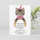 Invitation Fête d'anniversaire chaton chat rose or paillettes