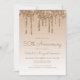 Cette invitation de fête d'anniversaire de mariage tendance pour les 50 ans présente une bordure de paillettes fausses or brillantes et un fond ombré. Les mots "Anniversaire de 50 ans" et les noms du couple apparaissent dans une écriture manuscrite or casual, avec le reste du texte personnalisable en police sans serif or. Le même design de goutte de paillettes or apparaît au verso.