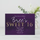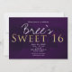 Invitation Fête d'anniversaire chic Sweet 16 en violet, noir