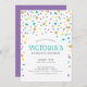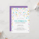 Cette Fête d'anniversaire Confettis Colorés présente des confettis de couleurs vives : turquoise, violet, jaune, bleu et rose avec de faux paillettons dorés. Couleur violette unie au verso de la carte. Pour toute demande de modifications de conception personnalisée par le designer indépendant, veuillez envoyer un e-mail à paula@labellarue.com AVANT de personnaliser ou de passer commande.