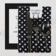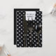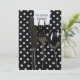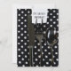 Invitation à une fête d'anniversaire avec des couverts noir argent sur une serviette à pois.