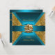 Invitation Fête d'anniversaire Damask Turquoise Blue Gold Inv