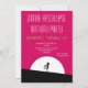 Une invitation à une fête d'anniversaire d'apocalypse zombie. Schéma de couleurs vives et audacieuses rose et noir. Une silhouette de zombie cool avec les bras tendus à la chasse aux cerveaux. Une grande lune blanche illumine depuis l'arrière.