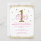Invitation Fête d'anniversaire de 1 an pour filles Rose & Or