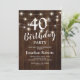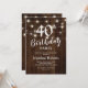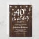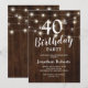 Élégantes invitations d'anniversaire de 40 ans avec un fond en bois rustique, des guirlandes lumineuses et un modèle de texte de célébration d'anniversaire quarantième moderne. Ce modèle peut être modifié pour un anniversaire de 18, 21, 30, 50, 60, 70 ou 80 ans !