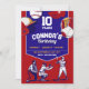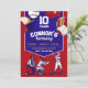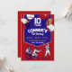 Frappez un home run avec cette invitation sportive d'anniversaire! Parfait pour le petit salaud de votre vie, ce design présente une illustration ludique en rouge et bleu, parfaite pour une fête d'anniversaire sur le thème du baseball. Réunissez votre équipe pour une fête remplie de plaisir, de jeux et de joie d'anniversaire!