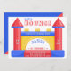 Cette invitation de fête d'anniversaire présente un design dynamique de maison rebond rouge, bleu et jaune et peut être customisé avec vos détails spécifiques de l'événement. Idéal pour les anniversaires d'enfants, c'est une façon amusante pour la famille invitation et les amis de la fête. Parfait pour les enfants, les parents et les clients de tous âges !