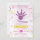 Invitation d'anniversaire sur le thème du bowling avec une icône centrale amusante de bowling, entourée de douces éclaboussures d'aquarelle et d'accents d'étoiles scintillantes. Parfait pour une célébration ludique et colorée, ce design ajoute une touche joyeuse et sportive à votre jour spécial.