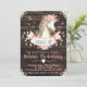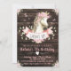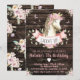 Invitation d'anniversaire de cheval pour filles avec un joli cheval à l'aquarelle sur un fond floral à l'aquarelle rustique et en bois de grange. Cette invitation d'anniversaire de cheval est facilement personnalisable pour votre événement en ajoutant simplement vos coordonnées.