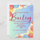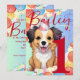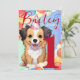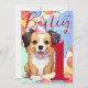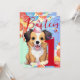 Célébrez l'anniversaire de votre chien avec cette adorable invitation de chien de chiot coloré pour vos amis spéciaux grand jour. Ce mignon chien de dessin animé est prêt pour une fête, avec ballons et confettis. Il espère que tu lui as apporté un marionnette aussi. Le modèle peut être customisé avec le nom et l'âge de votre chien sur le devant, et des informations de fête sur le dos.