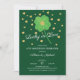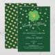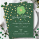 Invitation de fête d'anniversaire moderne et amusante avec un trèfle à quatre feuilles irlandais et des cœurs dorés. Retournez notre invitation de mariage chanceux en amour pour découvrir un dos vert coordonné pour un effet spécial supplémentaire.