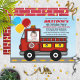 Ajoutez vos propres détails à ces invitations de fête d'anniversaire modèle photo thème pompier amusant.