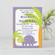 Ce invitation d'anniversaire personnalisable de dinosaures présente un dinosaure aux coeurs sur son dos entre deux palmiers.