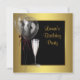 Invitation à une fête d'anniversaire pour femme avec des ballons noirs et or et un verre de champagne.