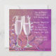 Jolie invitation de fête d'anniversaire de femme en rose chaud brillant, violet, rubans et verres à champagne et talons hauts. Cette invitation élégante de fête d'anniversaire en rose chaud et violet est facilement personnalisable pour votre événement en ajoutant vos détails d'événement, style de police, taille et couleur de police, et libellé.