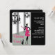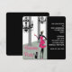 Invitation d'anniversaire de tout âge avec lustre élégant et fille moderne en robe de soirée rose vif avec chat de mode. Cette conception amusante et élégante convient bien pour l'anniversaire d'une femme ou d'une adolescente.