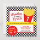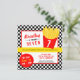 Vous planifiez une soirée à thème fry ? Laissez-nous vous aider à cuisiner une fête d'anniversaire amusante! Personnalisez notre Invitation d'anniversaire de Fry avec le nom de votre enfant, son âge et les détails de votre fête. N'oubliez pas de magasiner toute la collection pour apparier les incontournables de la fête ! Nous avons conçu cet invitation avec votre amoureux de frites en tête. Le design est composé d'un contenant de frites rouge de style fast-food rempli de frites jaunes et d'un arrière - plan en damier noir et blanc.