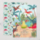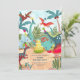 Une carte d'invitation de fête d'anniversaire de garçon dinosaure peinte à la main avec des dinosaures dans une jungle préhistorique pour les enfants. Œuvre originale de Caroline Bonne Müller.