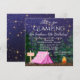 Cartes d'invitation pour une fête d'anniversaire de glamping pour filles avec une tente rose mignonne et un feu de camp sur un fond de forêt nocturne étoilée. Ces invitations de fête d'anniversaire de camping pour filles sont facilement personnalisables pour votre événement en ajoutant simplement vos détails dans le style de police et la formulation de votre choix.