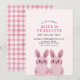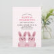 Thème de lapin mignon pour l'anniversaire d'une jumelle avec deux lapins roses portant des lunettes roses. VOUS POUVEZ ENLEVER LES LUNETTES ! Dos avec motif à carreaux.