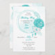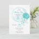 fleurs romantiques turquoises et blanches sur une belle invitation à la fête d'anniversaire de couronnes. Les détails de la parties scintillant sont simulés.
