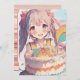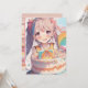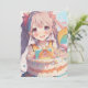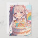 Anime girl tenant un gâteau d'anniversaire joli pastel invitation de fête d'anniversaire de petite fille.