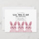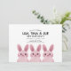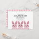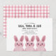 Thème de lapin mignon pour une invitation d'anniversaire de Meilleure Amie ou de triplés avec trois bébés lapins roses. Dos avec motif à carreaux.