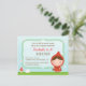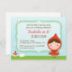 Pour les petites filles qui aiment le conte de fée de la petite circonscription rouge, prévoyez une fête d'anniversaire à thème pour elle à commencer par cette mignonne invitation à la fête d'anniversaire ! Elle a une adorable petite fille dans un casquette rouge portant un panier. Le Arrière - plan comprend un champignon rouge et blanc et un lapin. Personnalisez facilement vos détails de fête dans l'espace de la bordure décorative qui contient des feuilles et des fleurs.